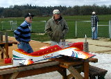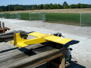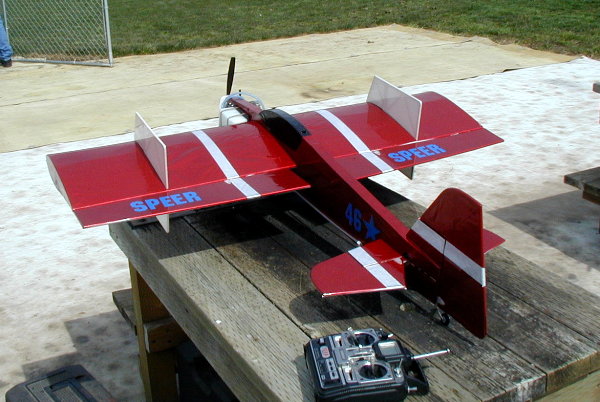 7 ft wing spand powered by 2 saito 50s.